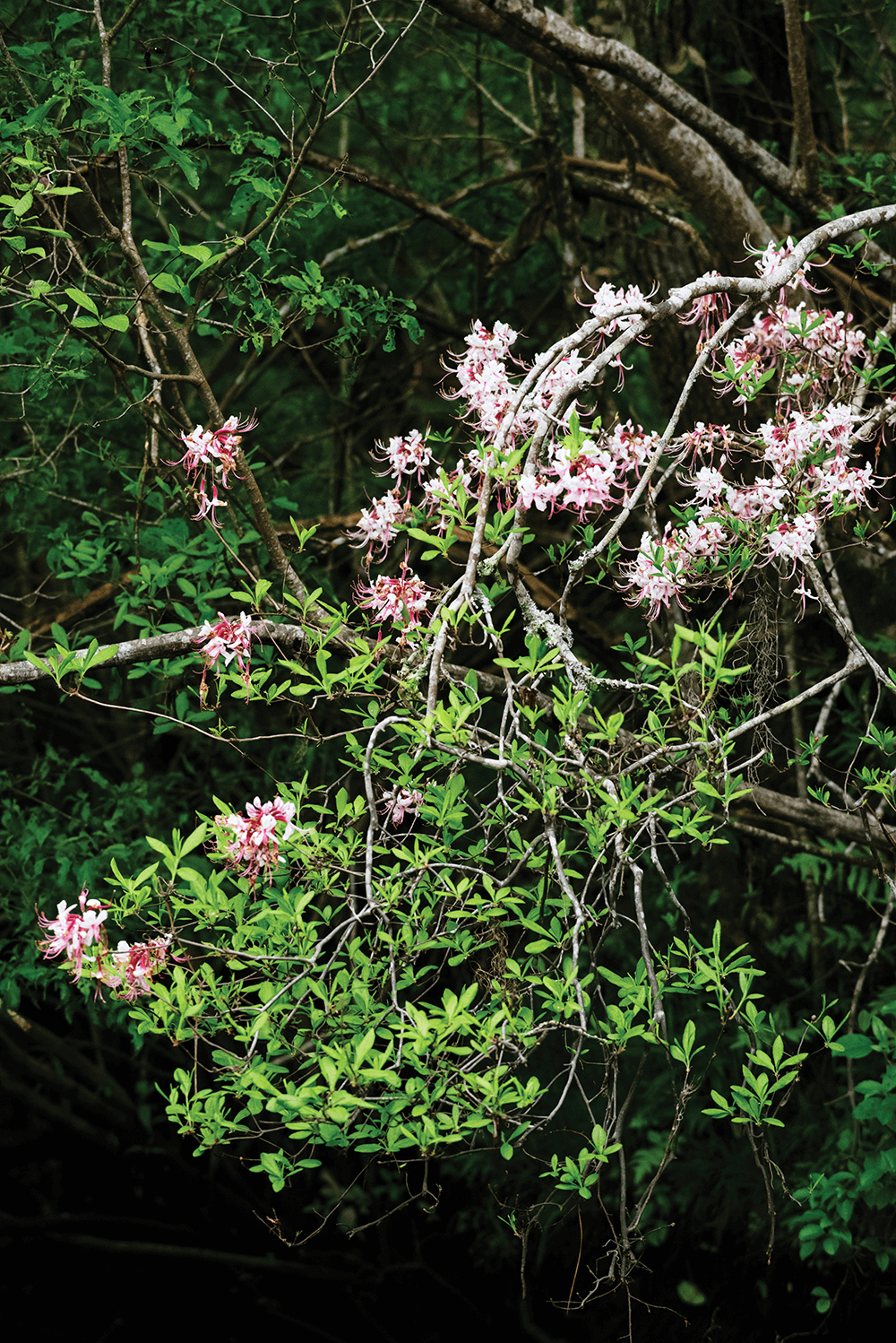 The next morning, the purple-and-orange sunrise revealed a strange new landscape: swampy, full of palmetto and native azalea. Every bit of ground was soggy. The cypress trees were marked with dark water lines, evidence that the high tide was rushing downriver toward the ocean. We’d gotten up at 5:30 to ride the current down into Wilmington, and the water pushed us to a top speed of 5.3 miles per hour. We passed Roan Island, and the aptly named Black River. Soon, seaweed appeared, and fiddler crabs scurried in the mud among the spartina grass. Chris and Kemp disappeared ahead, and Andrew was gone, too, somewhere behind me, taking pictures. For the first time on the trip, I was alone. On a kayak. Drifting through the swamp on a falling tide.