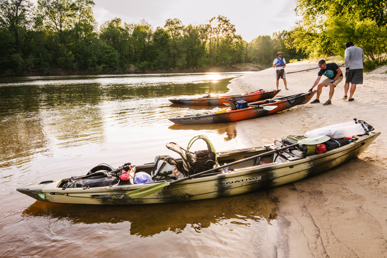 This view — brown water, contained between green walls of trees, with a riverbend always in sight — would surround us for a week. There were slight variations: We would pass 14 road crossings. Four dams. Dozens of small boat ramps and hunting shacks. Hundreds of PVC pipes, stuck into the muddy bank to hold fishing rods. Scores of bush hooks — bits of fishing line tied to low-hanging branches — and “POSTED: No Trespassing” signs. There were factories, logjams, water intakes, drainage pipes, docks, downed trees, and mudslides. We saw an otter on day two, the first cypress tree on day three, a stray puppy on day five, alligators on day seven, and a dolphin on day eight. The water itself was swift at the beginning, glassy in the middle, and angry at the very end.